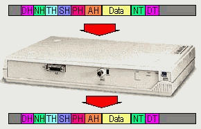 In reality, data is passed from one layer down to the next lower layer at the sending computer, till it's finally transmitted onto the network cable by the Physical Layer. As the data it passed down to a lower layer, it is encapsulated into a larger unit (in effect, each layer adds its own layer information to that which it receives from a higher layer). At the receiving end, the message is passed upwards to the desired layer, and as it passes upwards through each layer, the encapsulation information is stripped off .